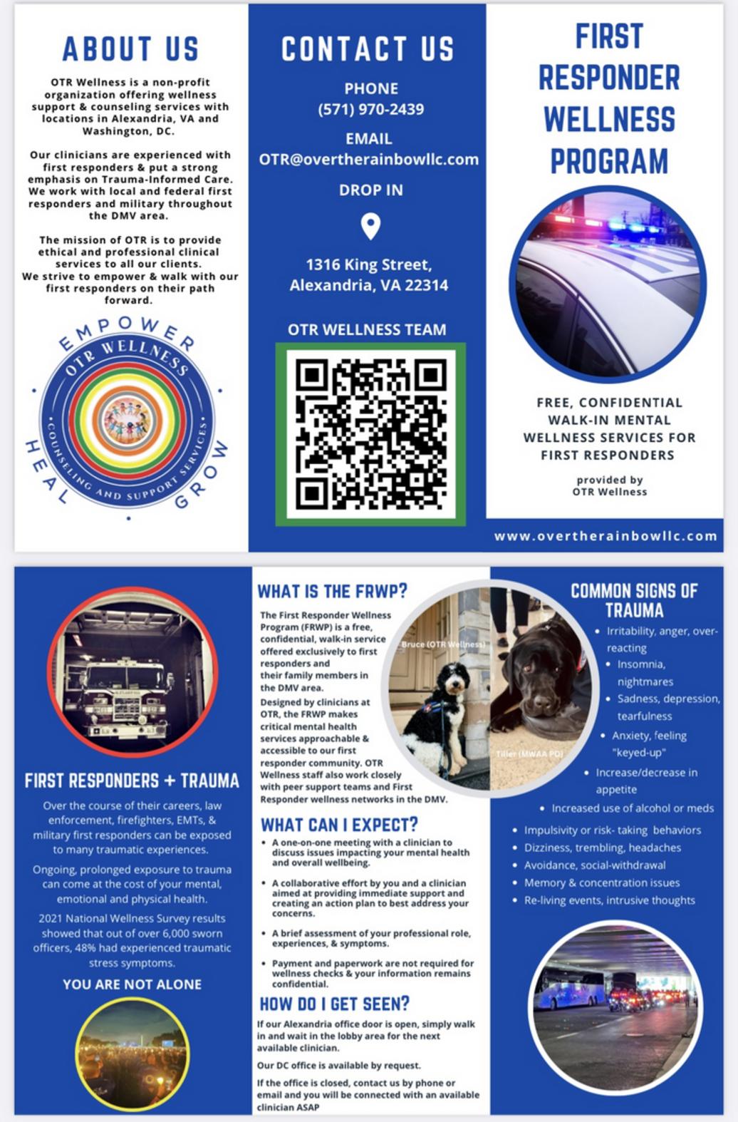 We offer Free and Confidential Wellness Checks and Supportive Services for first responders. We also provide Debriefing and Wellness Support Services for our area police and fire departments and federal agencies upon request.​